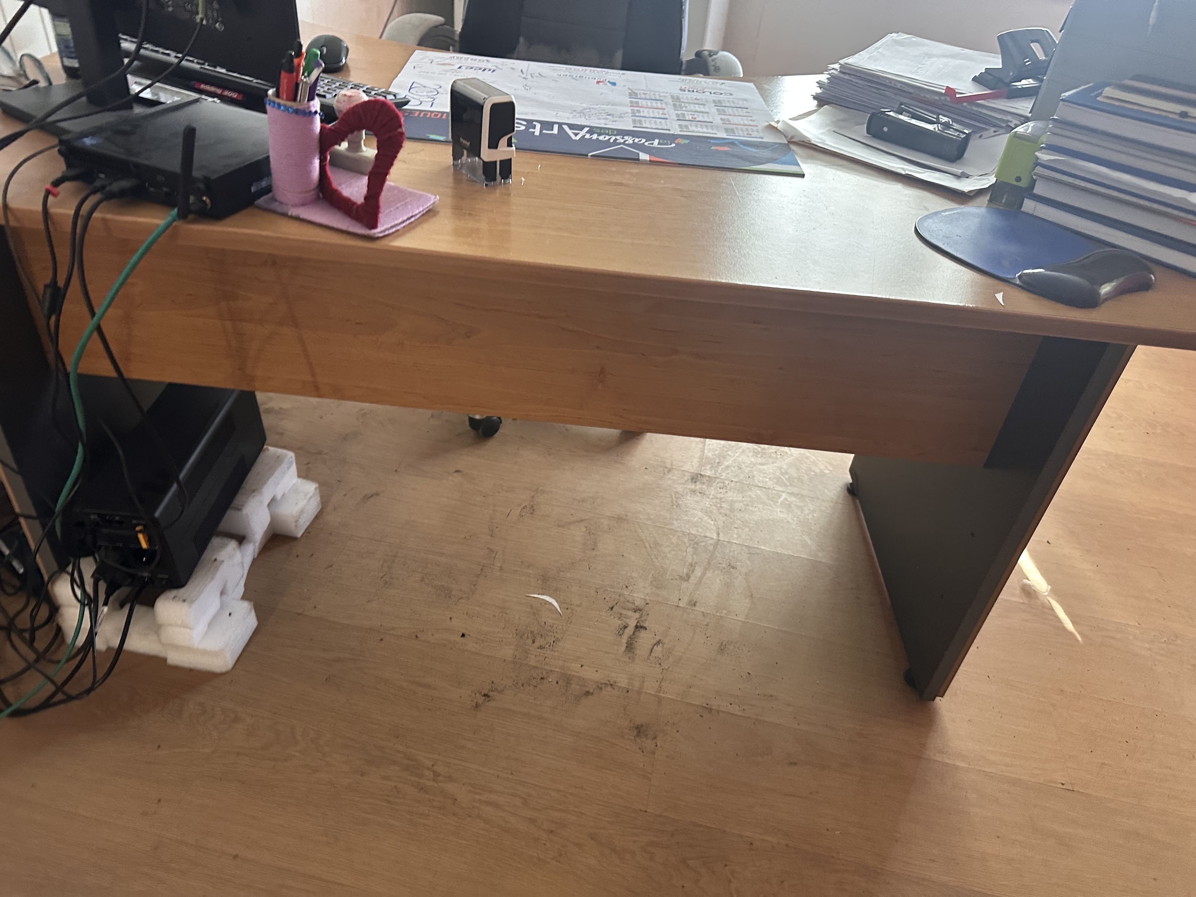 2 bureaux en stratifié bois et particules 1 fauteuil en simili cuir