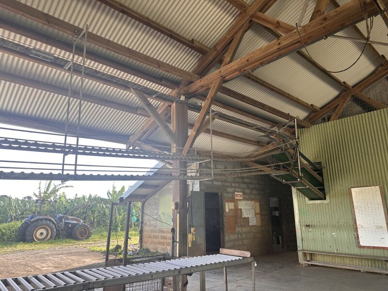 1 système de convoyage à bananes, circa 2001 comprenant : 1 convoyeur à rouleaux, environ 80 m linéaires, avec balance de pesée 1 convoyeur à carton, environ 45 m linéaires et 1 convoyeur motorisé 80 traies (année 2015) 1 système post récolte 1 convoyeur a déchet motorisé 1 petit convoyeur retour fruits 1 grand bac 1 penderie améliorée 105 régimes