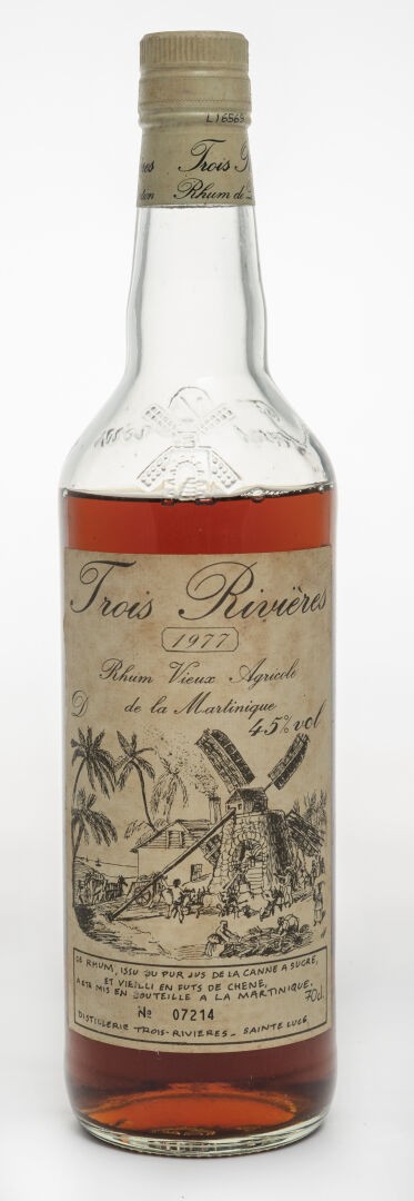 TROIS RIVIERES Rhum vieux, 45°, Martinique. Millésime 1977. Bouteille numérotée 07214. 70 cl. Les infimes stigmates du temps ser