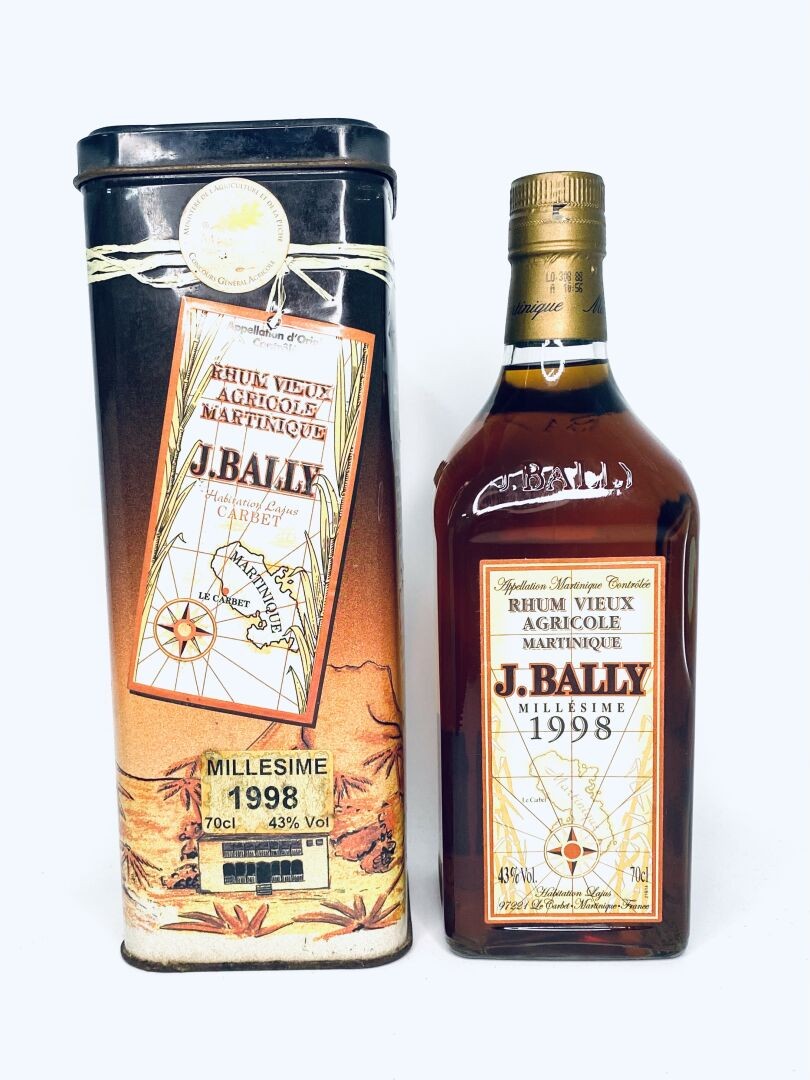 J.BALLY Rhum vieux agricole, 43°. Martinique AOC. Millésime 1998. 70 cl.
