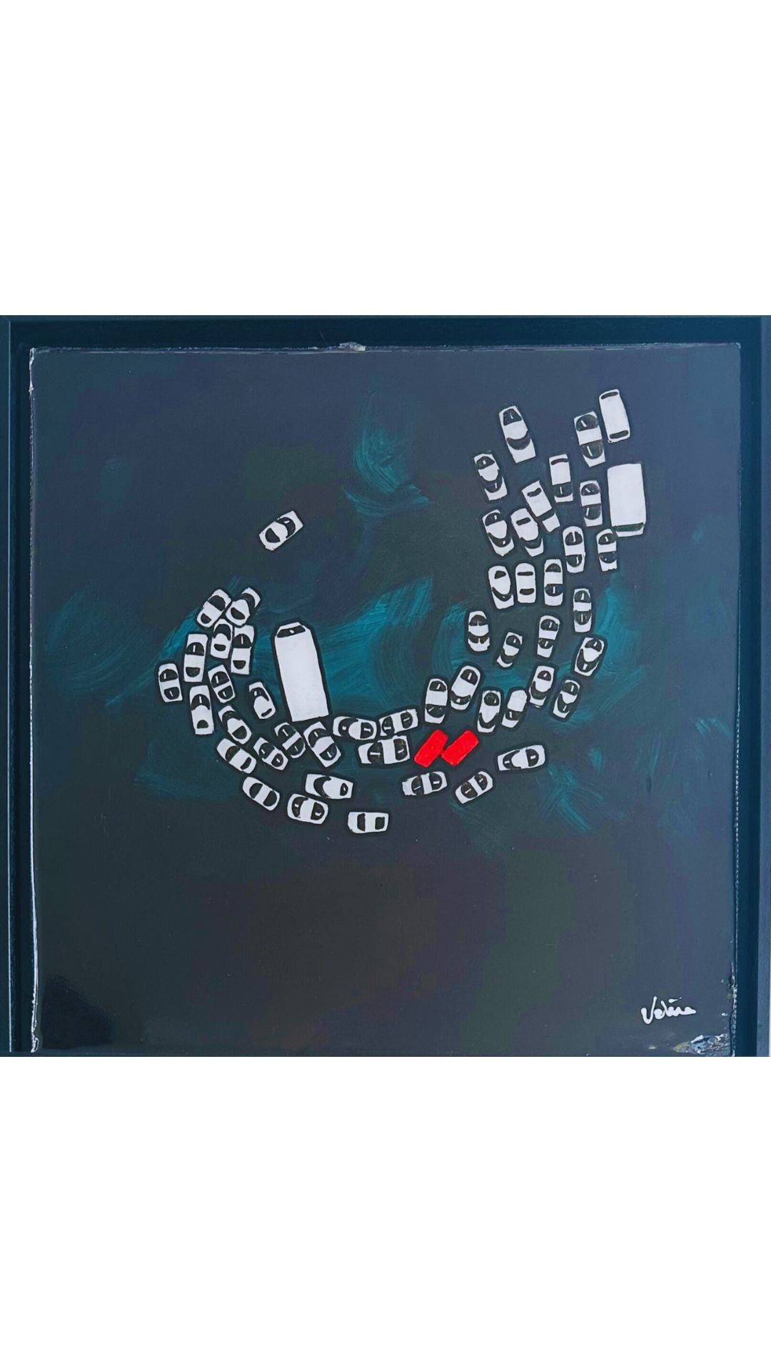 Bois, acrylique et résine epoxy sur toile. Signé en bas à droite.